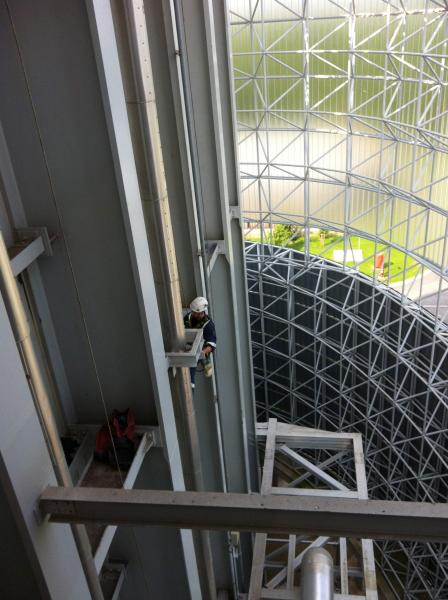 As is often the case, the coating had been damaged towards the end of construction and before final delivery due to the numerous activities that took place during the build. By this time, scaffolding had already been removed, making rope access the ideal solution.