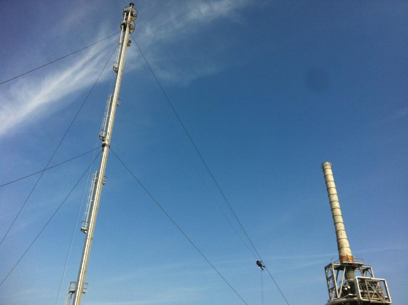 After the drone inspection of the stay cables earlier this year, we carried out the second part of the scope in May. This involved visually inspecting the stay cables and attachment points on the flare stack. The reports were compiled and submitted to the client. After review, no further action was required on the stay cables. Finally, the cables were greased.