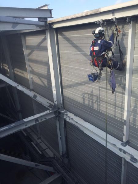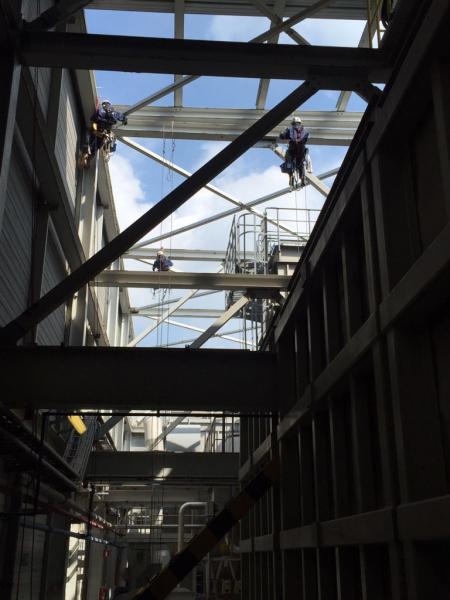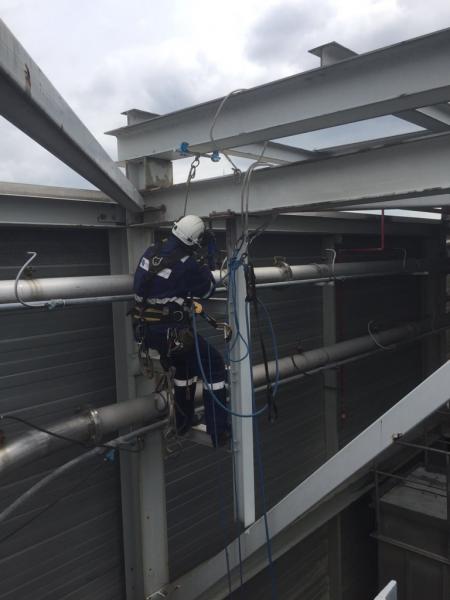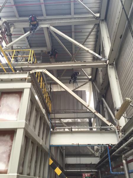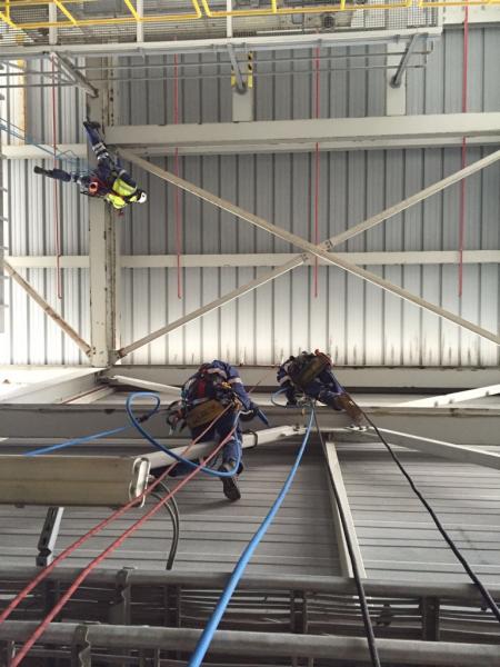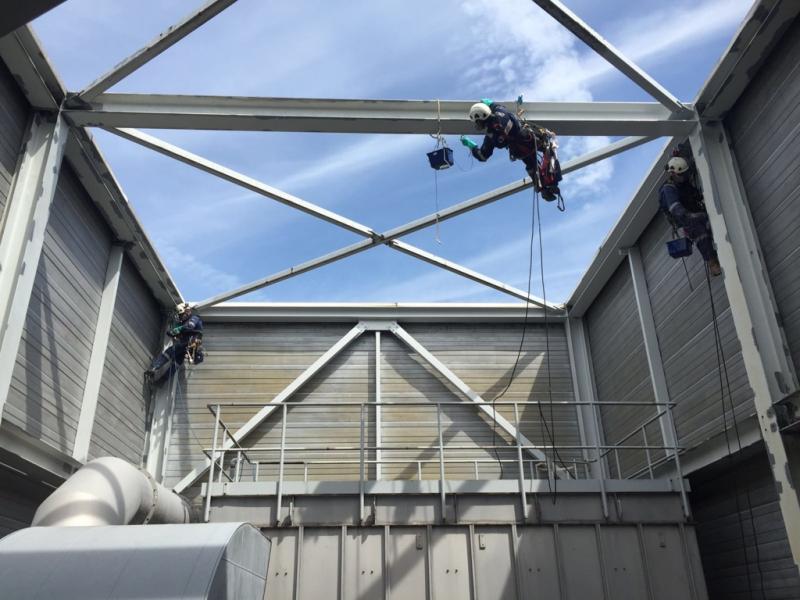 Op een site in Mechelen, Belgie is er 6 weken hard gewerkt aan de staalconstructie. Schoonmaken, roestverwijderen en meerdere lagen verf werden aangebracht. Opmerkelijk was het vele zgn. artificiele klimmen in de dakconstructie om goed op alle plekken te komen.