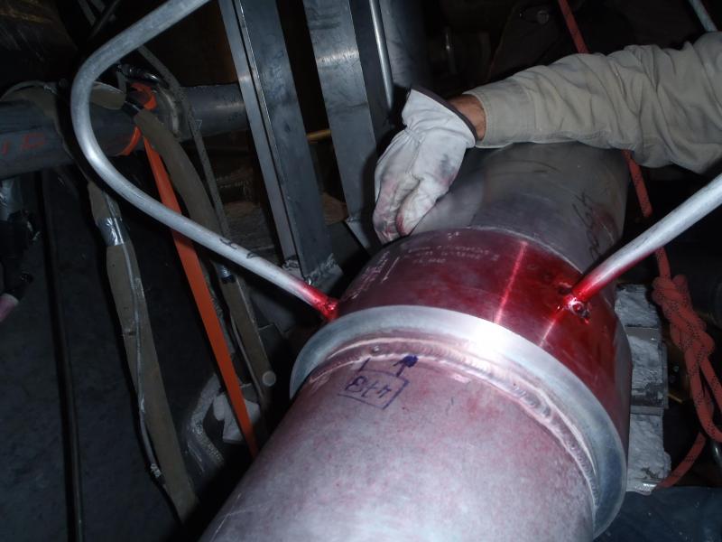 Als eerste hebben we het overige perliet, een isolatiekorrel, verwijdererd zodat we overal veilig konden afdaken. Daarna werden alle reparatiepunten in kaart gebracht, gerapporteerd en besproken met de klant. Kritieke punten hebben we onderzocht met PT. Na overleg over een plan van aanpak hebben we de reparaties uitgevoerd waaronder aluminium laswerk aan leidingen en supports. Vervolgens zijn alle reparaties weer geinspecteerd met Penetrant onderzoek. En als laatste hebben we alle lassen tijdens de druktest van het leidingsysteem geinspecteerd.