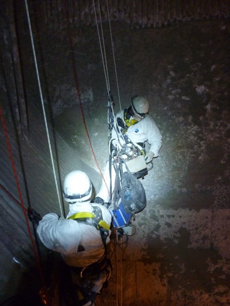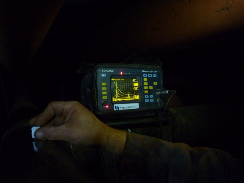Ook voor het nemen van de replica’s was rope access toegang nodig. Verder werden er Magnetische onderzoeken zowel met als zonder UV lamp en Ultrasoon lasonderzoek uitgevoerd en uiteraard gerapporteerd.